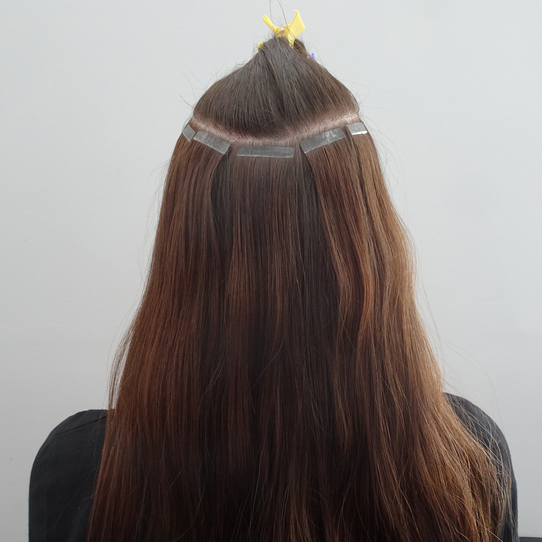 Our tape hair extensions are a great method if seeking a comfortable option. The ultra thin tape pieces are sandwiched and secured between your natural hair. These are most recommended for those with finer hair and depending on placement, it could also be a great option for a high or low ponytail.